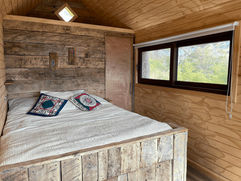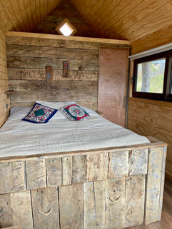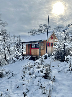 This rustic retreat is a Patagonian-style cabin nestled on a hill overlooking our orchard. A short uphill walk from the main garden and communal building leads to your private retreat.